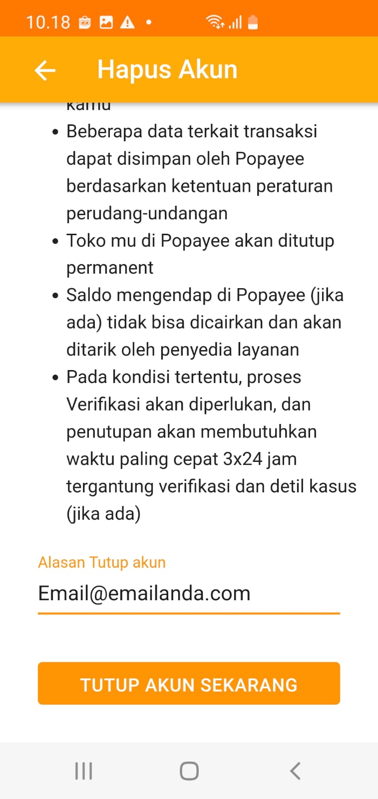 Cara Penutupan Akun Popayee: